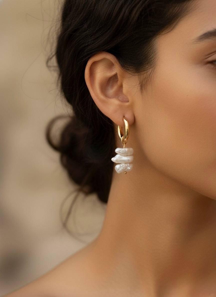 Auskarai pagaminti iš baroko tipo gėlavandenių perlų – tai itin prabangūs ir vertinami perlai dėl savo išskirtinių formų ir spindesio. Jie nėra apdirbti – tokią unikalią formą sukuria pati gamta. Kiekvienas perlas yra vienetinis, todėl visiškai identiškų tiesiog nebūna.