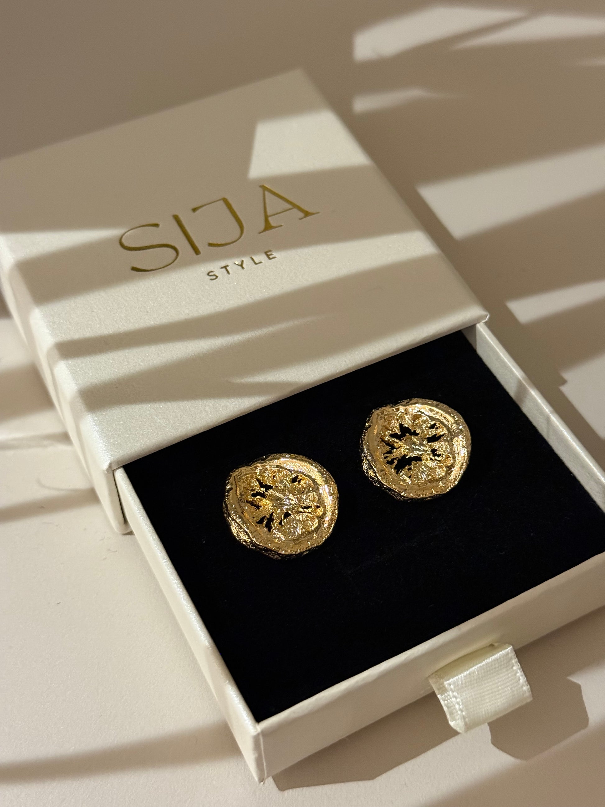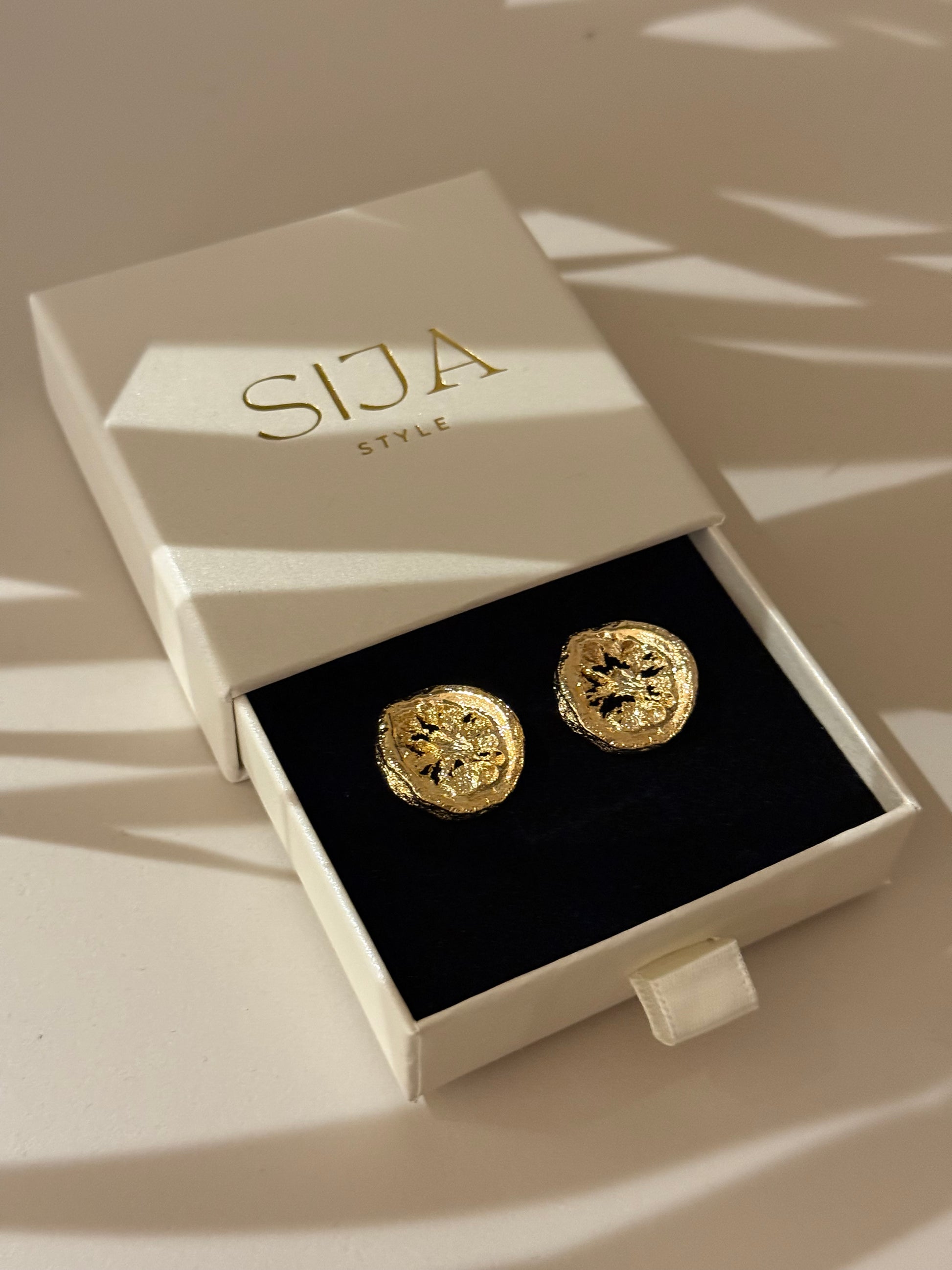 Dizainas, kuris lyg meno kūrinys – taip ir norisi į jį žiūrėti. Pagaminti iš auksu dengto plieno, kuris nekeičia spalvos ir yra atsparus vandeniui. Papuošalas, kuris nepaleidžia – šie auskarai tikrai išsiskirs iš minios.