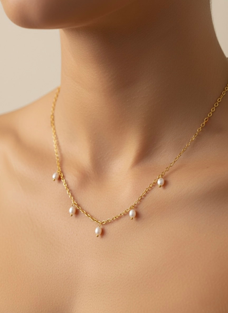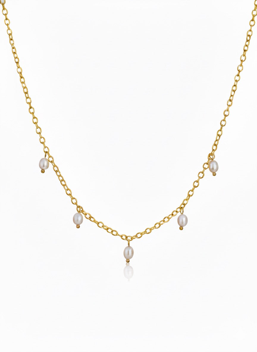 Paauksuota grandinėlė su penkiais natūraliais gėlavandeniais perlais – subtilus elegancijos ir išskirtinumo derinys. Šis kaklo papuošalas išsiskiria savo grakštumu ir švelniu spindesiu, tobulai papildantis tiek kasdienį, tiek vakarinį įvaizdį. Tikrai išskirtinis akcentas, kuris traukia akį ir pabrėžia moteriškumą. ✨