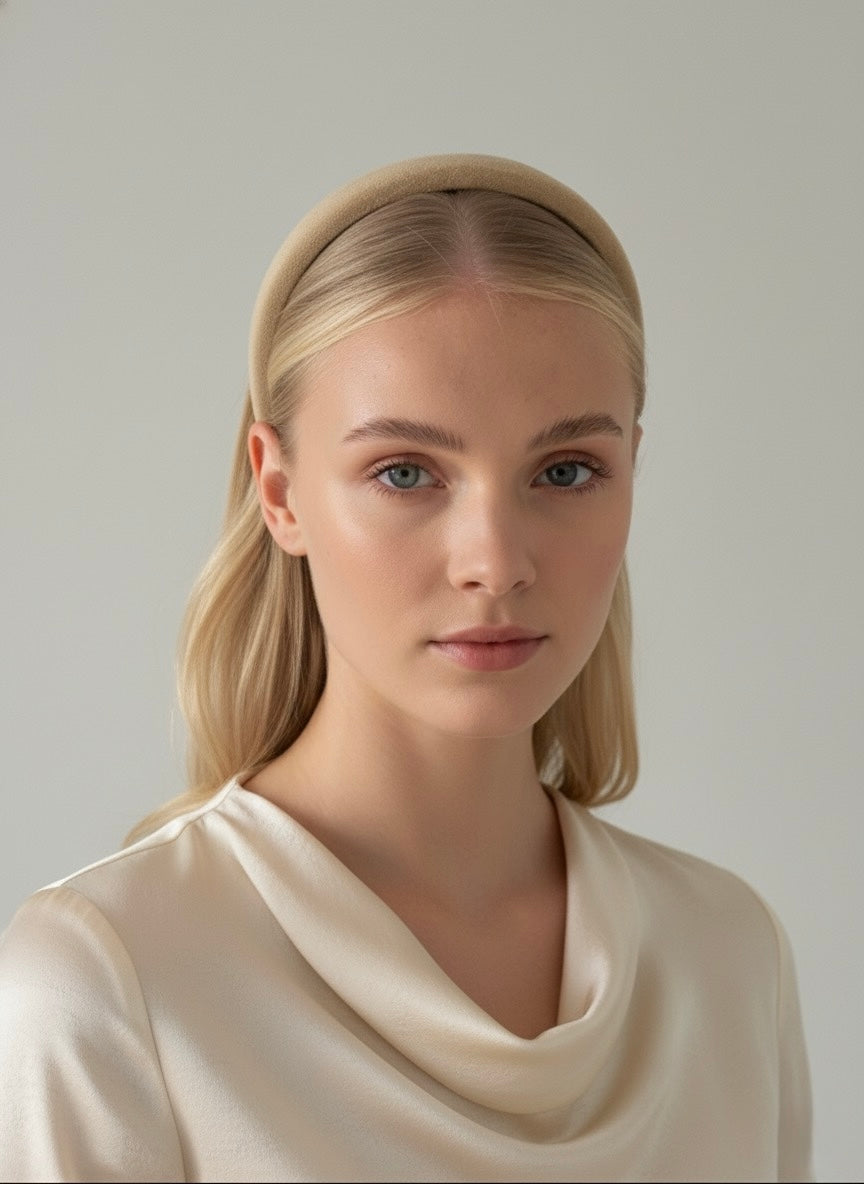 Elegantiškas, lankstus plaukų lankelis, kuris nespaudžia galvos ir suteikia maksimalų komfortą. Smėlinės spalvos, pagamintas iš tankaus, kokybiško audinio – puikus akcentas tiek kasdienai, tiek išskirtinei progai.
