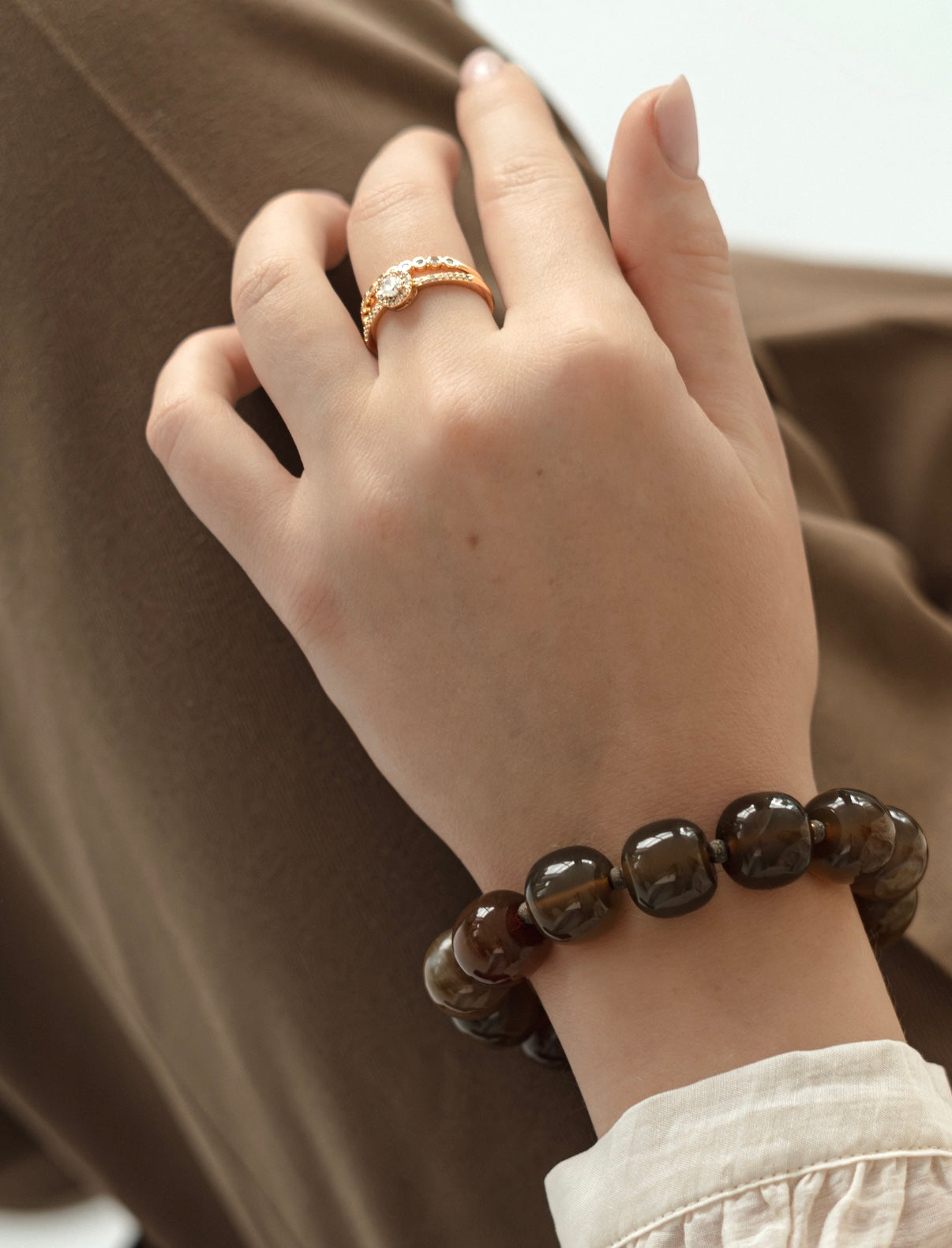 Išskirtinė ir stilinga apyrankė iš masyvių, apvalių Agato akmens karoliukų. Šiuo laikotarpiu itin madinga, nes derina rudi ir žali atspalviai, kurie ypač populiarūs stiliuje. Agatas garsėja savo natūralumu, unikaliu raštu ir spalvų įvairove, todėl kiekviena apyrankė tampa vienetine ir ypatinga detalė, pridedančia elegancijos bei charakterio jūsų įvaizdžiui.