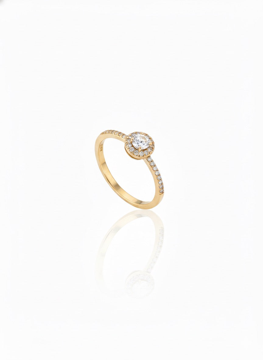 Šis žiedas – tikras elegancijos simbolis. Pagamintas iš nerūdijančio plieno, dengto auksu, jis spindi nepriekaištingu žvilgesiu. Viršus puoštas smulkiais, blizgančiais cirkoniais, kurie sugeneruoja šviesos žaismą ir prideda išskirtinio prabangos įspūdžio. O vidurije puikuojasi jau didesnis Cirkonis kuris ir atkreipia dėmesį.