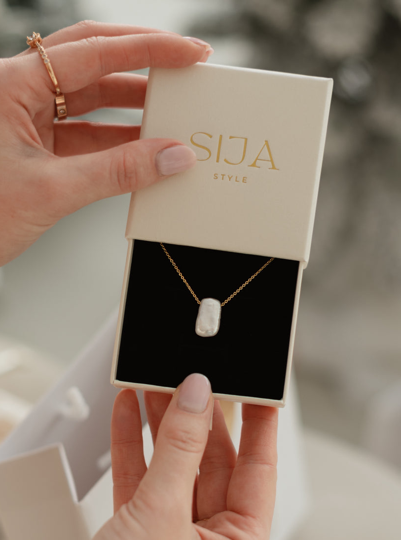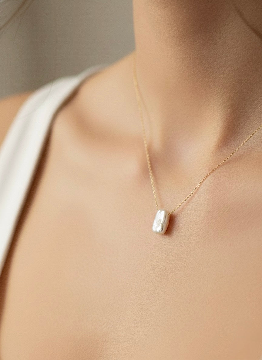 Išskirtinė nerūdijančio plieno grandinėlė, dengta prabangiu 24k auksu, papuošta natūraliu gėlavandeniu perlu.