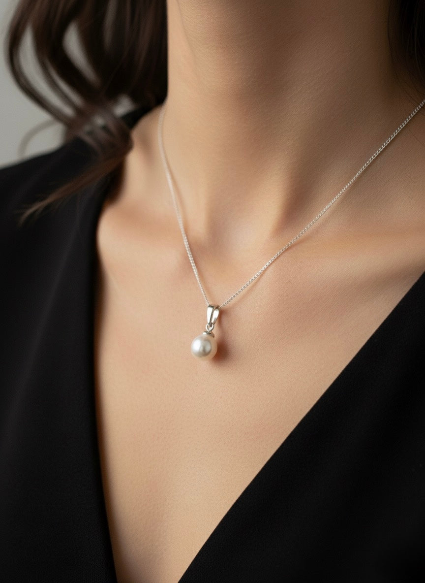 Nuimamas pakabukas, taip pat pagamintas iš hipoalerginio pilko medicininio metalo, dekoruotas perlų masės elementu, kuris alsuoja elegancija ir subtilumu.