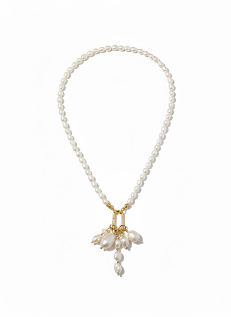 Vėrinys iš gėlavandenių perlų su paauksuotu užsegimu, kuris suteikia jam transformerių savybių. ✨ Šis universalus dizainas leidžia dėvėti vėrinį daugybe skirtingų būdų: su visais pakabukais, be pakabukų, apsukus – kaip klasikinį baltų perlų vėrinį, arba pasirinkti vieną ar kelis pakabukus pagal nuotaiką. 🐚 Tai ne tik elegantiškas aksesuaras, bet ir unikalus kūrinys, pritaikomas prie bet kokios progos ar stiliaus! 🤍